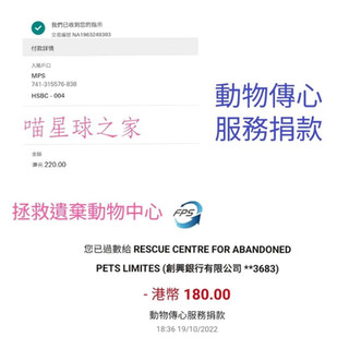 動物傳心服務捐款,按客戶意向捐款$180元正拯救遺棄動物中心