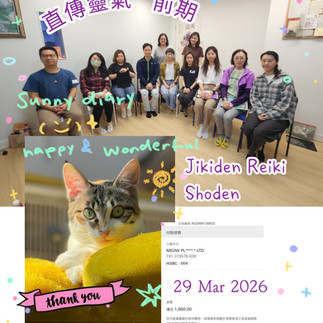 4月將於25號安排動物傳心初級課程,26號安排動物傳心附加課程。直傳靈氣課程則安排於12號或18號,視乎下星期完成前期學員的意向。